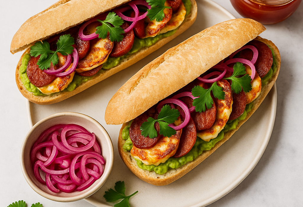 Treat yourself to this hearty, flavour-packed breakfast baguette, layered with crispy chorizo, golden halloumi, creamy smashed avocado, and zingy red onion. It’s perfect for the weekend, or any day you want something bold, filling, and undeniably delicious.